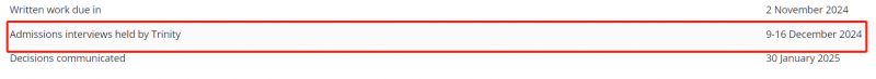 首先,Trinity College将在12月9日至16日进行面试,相较于去年,时间延后了一些。