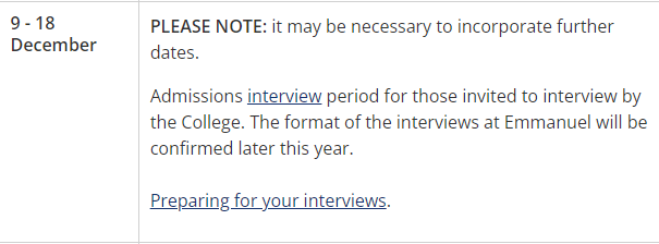 接着是Emmanuel College,其面试时间为12月9日至18日,也稍有调整。