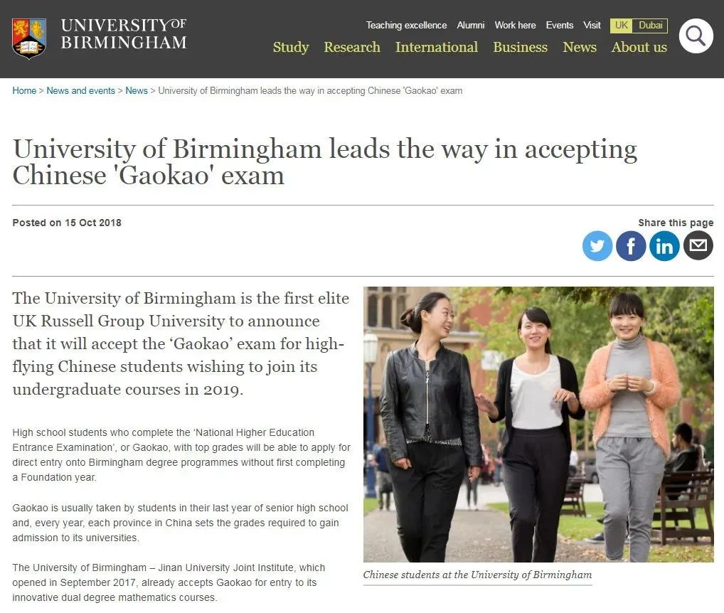作为首家承认中国高考成绩的英国知名大学,伯明翰大学一直以来都是中国学生的热门选择。申请条件包括高考总分的80%以上,对于需要A-level数学的专业,需要高考数学单科达到80%以上,雅思成绩在6.0-7.0以上。