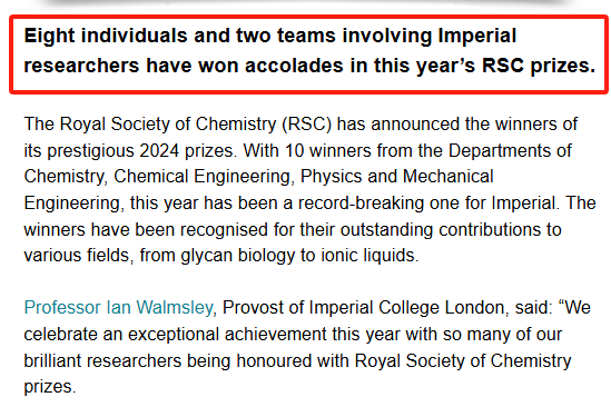 在QS排名中,师均论文引用量占据着20%的重要比重。这一指标直接反映了大学的科研质量和影响力。帝国理工以其突出的科研实力脱颖而出,不仅拥有着英国高校中最大比例的研究人员,更是在2024年皇家化学学会奖中斩获10项殊荣,创下历史纪录。其科研团队在《Nature》等国际顶尖期刊上的发文数量更是与牛津剑桥不相上下,呈现出强劲的学术实力。