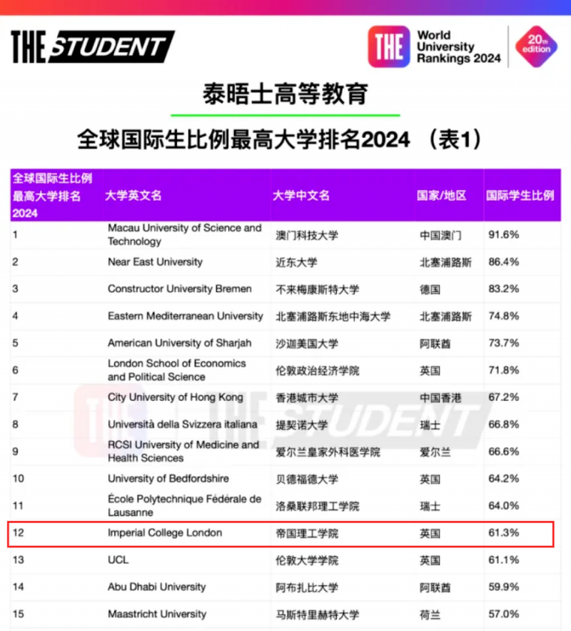 泰晤士高等教育2024年全球国际生比例排名显示,帝国理工在留学生数量上表现抢眼,成为了国际生数量第二多的英国高校,仅次于LSE。根据官方数据显示,帝国理工的国际生比例更是高达74.5%,这充分展现了其在国际留学生心目中的高度吸引力和优越地位。国际化的校园环境不仅丰富了学术氛围,也为学生提供了与来自世界各地的同学交流学习的宝贵机会。